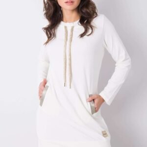 Sukienka z bawełny z długim rękawem w kolorze ecru. Po bokach kieszenie wsuwane. Idealna na co dzień.