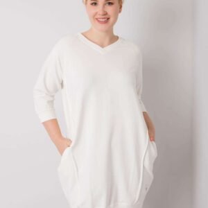 Sukienka plus size z kieszeniami oraz rękawem 3/4. Sukienka w kolorze ecru.