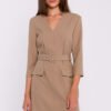 Minimalizm to esencja kobiecości. Ta niebanalna sukienka o kroju żakietowym zapinana na jeden guzik to ma. Sukienka z przodu zapinana na ozdobny guzik, w środku zapinana na dodatkowy guzik. Sukienka bez podszewki.
