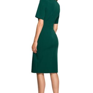 Klasa drzemie w prostocie tej sukienki ołówkowej z podwójnym przodem na zakładkę. Sukienka zapinana na kryty zamek.
