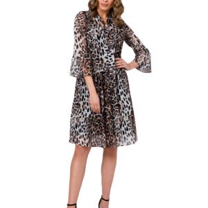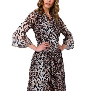 Zwiewna sukienka szyfonowa z wiązaniem w dekolcie to propozycja do pracy i na wakacje. Sukienka z rękawami do łokcia, posiada podszewkę.