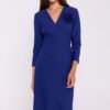 Oto urokliwa sukienka o ołówkowym fasonie, która łączy w sobie klasyczny urok z nowoczesnym stylem. Wykonana z wysokiej jakości tkaniny, jest nie tylko elegancka, ale także komfortowa. Jej okrągły dekolt dodaje jej subtelności. Modelujące przeszycia biegnące przez środek sukienki podkreślają sylwetkę i nadają jej elegancji. Rękawy długości 3/4 są uniwersalne i modne. Długość sukienki sięga za kolano, co nadaje jej wszechstronności na różne okazje. Z przodu i na boku znajduje się rozcięcie, które dodaje sukience charakteru. Kryty zamek z tyłu ułatwia jej zakładanie. Sukienka nie posiada podszewki, co sprawia, że jest lekka i komfortowa w noszeniu. To sukienka, która została zaprojektowana i uszyta w Polsce, co świadczy o jej jakości i unikalności. To doskonały wybór na wiele okazji, od formalnych spotkań po bardziej relaksujące wydarzenia, dodając Ci pewności siebie i stylu.
