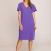 Elegancka sukienka z tkaniny o prostym, ołówkowym fasonie, odcinana w pasie, która subtelnie podkreśla sylwetkę. Dekolt w kształcie litery V dodaje szyku i wysmukla optycznie linię szyi. Długość midi zapewnia klasyczny wygląd, idealny zarówno na formalne, jak i codzienne okazje. Sukienka jest wyposażona w kryty zamek z boku oraz podszewkę, co zapewnia komfort i perfekcyjne dopasowanie. Dodatkowym, ozdobnym akcentem jest dopinany kwiatek na piersi, który dodaje jej oryginalności. Zaprojektowana i uszyta w Polsce, stanowi doskonały wybór dla kobiet ceniących styl i elegancję.