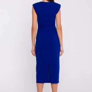 Elegancka sukienka tuba wykonana z elastycznej dzianiny to kwintesencja minimalizmu i nowoczesnego stylu. Jej dopasowany, bezrękawowy fason o długości midi pięknie podkreśla sylwetkę, a zakładki na boku na wysokości talii dodają subtelnej struktury i wysmuklają linię ciała. Na ramionach delikatne poduszki wprowadzają geometryczny akcent, nadając sylwetce bardziej zdefiniowany kształt. Sukienka wyposażona jest w kryty zamek z tyłu oraz dyskretne rozcięcie na dole, co zapewnia wygodę noszenia i swobodę ruchów. Brak podszewki sprawia, że sukienka jest lekka i komfortowa. Zaprojektowana i uszyta w Polsce, gwarantuje wysoką jakość oraz precyzję wykonania.