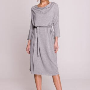 Stylowa sukienka o fasonie oversize, wykonana z wysokiej jakości dzianiny modalowej, która jest miękka, przewiewna i niezwykle przyjemna dla skóry. Swobodny krój zapewnia komfort noszenia, a dołączony pasek pozwala na podkreślenie talii według własnych preferencji. Dekolt typu woda nadaje kreacji eleganckiego charakteru, subtelnie układając się wokół szyi. Sukienka ma długość za kolano oraz rękawy 3/4, co sprawia, że jest uniwersalnym wyborem zarówno na co dzień, jak i na bardziej wyjątkowe okazje. Model zakładany przez głowę, bez zbędnych zapięć. Zaprojektowana i uszyta w Polsce, z dbałością o każdy detal.