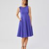 Ta lekka i zwiewna sukienka została uszyta z wysokiej jakości wiskozy, której satynowe wykończenie nadaje jej delikatny, subtelny połysk. Swobodny fason z rozkloszowanym dołem podkreśla kobiecą sylwetkę, a wiązanie w talii pozwala na idealne dopasowanie i podkreślenie kształtów. Dekolt w kształcie litery V subtelnie eksponuje szyję, a luźne rękawy sięgające przed łokieć zapewniają komfort noszenia i swobodę ruchów. Sukienka jest pozbawiona podszewki i kieszeni, co podkreśla jej lekkość i minimalistyczny charakter. Przód ozdabia efektowne rozcięcie, które dodaje stylizacji nuty lekkości i zmysłowości. Produkt zaprojektowany i uszyty w Polsce, łączący w sobie wygodę i elegancję, idealny na letnie dni i wieczorne wyjścia.