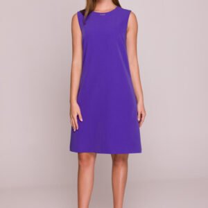 Elegancka sukienka wykonana z gładkiej, lekko elastycznej tkaniny z satynowym wykończeniem, która delikatnie lśni i nadaje całości wyjątkowego charakteru. Model z okrągłym dekoltem pod szyję ozdobionym metalowym detalem, który dodaje subtelnej elegancji. Sukienka bez rękawów, zapinana na kryty zamek z tyłu, co zapewnia wygodę noszenia i minimalistyczny wygląd. Fason prosty, trapezowy, swobodny i nieopinający sylwetki, idealny na co dzień i do biura. Sukienka ma podszewkę, która zwiększa komfort i trwałość ubrania. Długość przed kolano podkreśla kobiecą sylwetkę, jednocześnie zapewniając swobodę ruchów. Zaprojektowano i uszyto w Polsce.