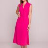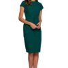 Elegancka sukienka o fasonie trapezowym, wykonana z gładkiej, przyjemnej w dotyku tkaniny. Model wyróżnia się efektownymi, szerokimi rękawami typu nietoperz o długości 3/4, które nadają całości lekkości i subtelnego charakteru. Półokrągły dekolt podkreśla kobiecą sylwetkę w delikatny sposób, a swobodna talia zapewnia wygodę noszenia i nie opina figury. Dół sukienki jest prosty, co w połączeniu z luźną górą tworzy harmonijną, elegancką całość. Sukienka zapinana jest na kryty zamek z tyłu, dzięki czemu prezentuje się wyjątkowo estetycznie. Długość mini przed kolano, dodaje jej nowoczesnego charakteru, czyniąc ją idealnym wyborem zarówno na eleganckie przyjęcia, jak i mniej formalne spotkania. Zaprojektowano i uszyto w Polsce z dbałością o każdy detal.