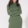 Sukienka o szerokim fasonie z kieszeniami na biodrach. Dekolt, rękawy oraz dół pozostawiony w stanie surowym.