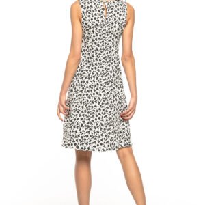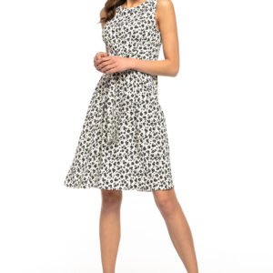 Elegancka sukienka wiązana z wysokiej jakości tkaniny w delikatny kwiatowy wzór. Sukienkę możemy zawiązać luźno lub na kokardę zarówno z przodu jak i z tyłu. Od biustu sukienka zaczyna się rozszerzać ku dołowi. Na karku zapinana jest na ozdobny guziczek. Idealnie tuszuje niedoskonałości figury jednocześnie podkreślając kobiece walory. Nasz must have na letnie wyjścia!