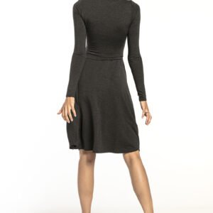 Elegancka sukienka z delikatnej w dotyku dzianiny wiskozowej z długim rękawem. Góra sukienki dopasowana, wykończona golfem. Odcięcie w talii i rozkloszowany dół sukienki. Rodzaj materiału pozwala jej na ładne, zwiewne zachowanie się w ruchu. Nasza propozycja idealnie nadaje się do stylizacji eleganckich jak i bardziej swobodnych. Materiał jest rozciągliwy nawet do 10 cm.