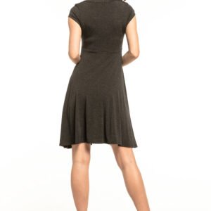 „Cienka, zwiewna sukienka midi z krótkim rękawem, z przodu ma dekolt w kształcie litery V, dół odcięty, rozkloszowany, idealna na lato. Nasza propozycja na każdy dzień. Sukienka naciąga się do 10 cm.