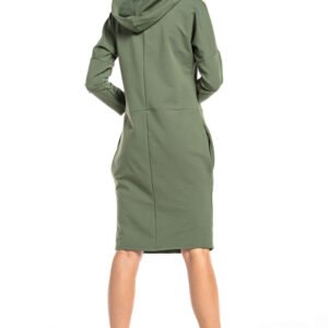 Sukienka z dzianiny z cięciami, kapturem i kieszeniami w szwie.