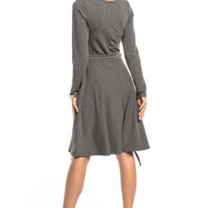 Sukienka rozkloszowana z dekoltem w serek i kieszeniami.