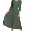 Sukienka rozkloszowana z dekoltem w serek i kieszeniami.