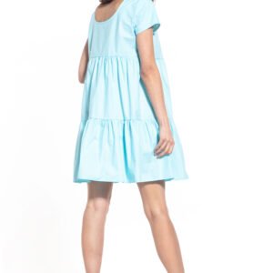Mini sukienka z dekoltem łódkowym i krótkim rękawem.