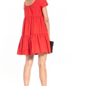Mini sukienka z dekoltem łódkowym i krótkim rękawem.