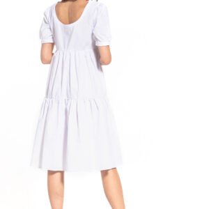 Sukienka midi z dekoltem łódkowym i krótkim bufiastym rękawem.
