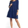 Trapezowa sukienka z rękawem 3/4 i dekoltem w szpic. Posiada pasek w kolorze sukienki z ozdobną sprzączką, po zawiązaniu w talii daje drugą wersję sukienki.