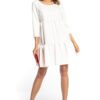 Luźna sportowa sukienka midi uszyta z dresowej dzianiny, z długim rękawem i dekoltem w szpic, z szeroką falbanką u dołu.