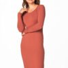 Prosta sukienka midi z wiązaniem w talii i rękawem 3/4.