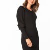 Prosta sukienka midi z wiązaniem w talii i rękawem 3/4.