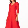 Dzianinowa sukienka mini z dekoltem w łódkę i długimi bufiastymi rękawami wykończonymi podwójnym mankietem.