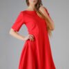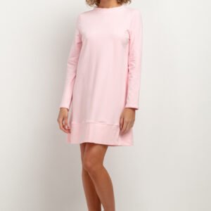 Dzianinowa sukienka przed kolano o trapezowym kroju to świetna propozycja na jesienną porę. Staranne wykończenie, dekolt stójka, zaszewki w okolicach biustu, obszycie na brzegu rękawów i ozdobna plisa na dole sukienki nadają sukience niepowtarzalnego stylu. Przyjemna dzianina z dresu przełamuje elegancką estetykę, zapewniając nonszalancki wygląd i wygodę. Sukienka jest szyta z dzianiny z certyfikatem OEKO-TEX Standard 100.