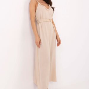 Letnia sukienka maxi na ramiączkach to stylowa i wygodna propozycja na codzienne wyjścia. Wykonana z lekkiego poliestru, który dobrze układa się na sylwetce i jest łatwy w pielęgnacji. Gładka tkanina podkreśla elegancję modelu, a rozkloszowany fason dodaje lekkości i swobody. Dekolt w serek ozdobiony delikatną falbanką nadaje sukience kobiecego uroku i romantycznego charakteru. Model nie posiada zapięcia jest zakładany przez głowę, co zwiększa komfort noszenia. Dodatkowym atutem jest zapinany pasek, który pozwala podkreślić talię i nadać sylwetce pożądany kształt. Idealna na letnie spacery, spotkania czy codzienne aktywności.