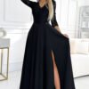 Veronica to wyjątkowa propozycja dla kobiet, które pragną wyróżniać się elegancją i klasą podczas najbardziej wyjątkowych okazji. Długa suknia maxi w kolorze czarnym została wykonana z połyskującego materiału, który pięknie mieni się w świetle, podkreślając szykowny charakter kreacji. Góra z efektowną stójką i subtelnymi marszczeniami optycznie wysmukla sylwetkę, a lekko rozkloszowany dół nadaje całości lekkości i wyjątkowego wdzięku.