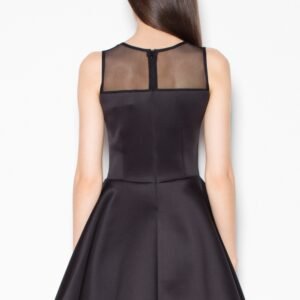 Sukienka bez rękawów z prześwitującą górą. Dół rozkloszowany lekko falujący wokół sylwetki. Doskonała na wiele okazji.