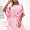 Plisowana sukienka z kopertowym dekoltem, krótkim rękawkiem i paskiem. Zapinana z tyłu na kryty zamek. Sukienka w kolorze zieleni butelkowej. Marka numoco. Produkcja polska.