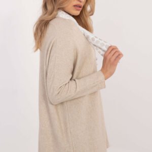 Elegancki damski sweter z subtelną, błyszczącą nitką, który doskonale sprawdzi się zarówno na co dzień, do pracy, jak i podczas wyjątkowych okazji. Gładki wzór podkreśla uniwersalny charakter swetra, a prążkowana faktura dodaje mu nowoczesnego stylu i delikatnej struktury. Wykonany z mieszanki wiskozy i elastanu, zapewnia komfort noszenia i lekko dopasowuje się do sylwetki. Standardowa długość i dekolt w serek tworzą klasyczny wygląd, a brak zapięcia nadaje mu swobodnej elegancji. Długi rękaw doskonale sprawdzi się w chłodniejsze dni. Do zestawu dołączona jest apaszka, która stanowi idealne dopełnienie stylizacji.