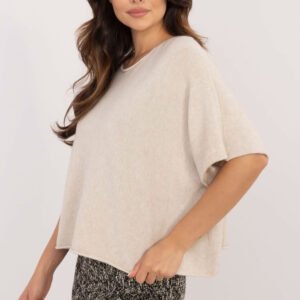 Elegancki damski sweter oversize, który doskonale sprawdzi się zarówno na co dzień, jak i do pracy. Wykonany z mieszanki wiskozy, poliestru i nylonu, zapewnia wygodę i styl. Sweter jest dwustronny, co pozwala na tworzenie różnorodnych stylizacji. Ma gładką fakturę, dzięki czemu pasuje do wielu zestawów, a jego krótka długość i rękawy 3/4 dodają mu nowoczesnego charakteru. Okrągły dekolt podkreśla szyję, a brak zapięcia nadaje całości lekkości i swobody. To idealny wybór dla kobiet ceniących elegancję połączoną z komfortem.