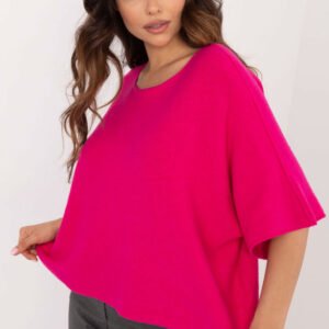 Elegancki damski sweter oversize, który doskonale sprawdzi się zarówno na co dzień, jak i do pracy. Wykonany z mieszanki wiskozy, poliestru i nylonu, zapewnia wygodę i styl. Sweter jest dwustronny, co pozwala na tworzenie różnorodnych stylizacji. Ma gładką fakturę, dzięki czemu pasuje do wielu zestawów, a jego krótka długość i rękawy 3/4 dodają mu nowoczesnego charakteru. Okrągły dekolt podkreśla szyję, a brak zapięcia nadaje całości lekkości i swobody. To idealny wybór dla kobiet ceniących elegancję połączoną z komfortem.