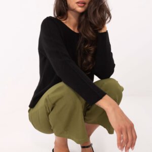 Casualowy damski sweter o standardowej długości, doskonały na co dzień oraz do pracy. Wykonany z wysokiej jakości mieszanki wiskozy, poliestru i nylonu, łączy w sobie komfort noszenia i trwałość. Gładki wzór sprawia, że jest uniwersalny i łatwo dopasowuje się do wielu stylizacji. Model posiada klasyczny okrągły dekolt oraz długie rękawy, co czyni go idealnym wyborem na chłodniejsze dni. Jego wyjątkowym atutem jest dwustronność, można nosić go zarówno stroną z widocznym szwem na zewnątrz, jak i stroną z ukrytym szwem, co daje swobodę tworzenia różnych looków w zależności od nastroju i okazji.
