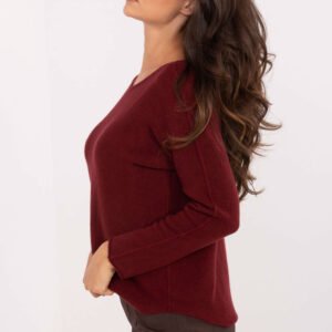 Casualowy damski sweter o standardowej długości, doskonały na co dzień oraz do pracy. Wykonany z wysokiej jakości mieszanki wiskozy, poliestru i nylonu, łączy w sobie komfort noszenia i trwałość. Gładki wzór sprawia, że jest uniwersalny i łatwo dopasowuje się do wielu stylizacji. Model posiada klasyczny okrągły dekolt oraz długie rękawy, co czyni go idealnym wyborem na chłodniejsze dni. Jego wyjątkowym atutem jest dwustronność, można nosić go zarówno stroną z widocznym szwem na zewnątrz, jak i stroną z ukrytym szwem, co daje swobodę tworzenia różnych looków w zależności od nastroju i okazji.