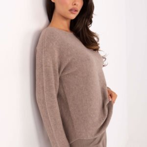Casualowy damski sweter o standardowej długości, doskonały na co dzień oraz do pracy. Wykonany z wysokiej jakości mieszanki wiskozy, poliestru i nylonu, łączy w sobie komfort noszenia i trwałość. Gładki wzór sprawia, że jest uniwersalny i łatwo dopasowuje się do wielu stylizacji. Model posiada klasyczny okrągły dekolt oraz długie rękawy, co czyni go idealnym wyborem na chłodniejsze dni. Jego wyjątkowym atutem jest dwustronność, można nosić go zarówno stroną z widocznym szwem na zewnątrz, jak i stroną z ukrytym szwem, co daje swobodę tworzenia różnych looków w zależności od nastroju i okazji.