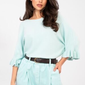 Elegancki damski sweter o standardowej długości, idealny zarówno na co dzień, jak i na bardziej wyjątkowe okazje. Wykonany z wysokiej jakości mieszanki wiskozy, poliestru i nylonu, zapewnia komfort noszenia oraz trwałość. Gładki wzór nadaje mu ponadczasowy charakter, a subtelne detale dodają kobiecego uroku. Model wyróżnia się okrągłym dekoltem oraz rękawami 3/4 zakończonymi delikatną falbaną, które podkreślają elegancję i lekkość stylizacji. To doskonały wybór dla kobiet ceniących klasykę w nowoczesnym wydaniu.