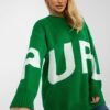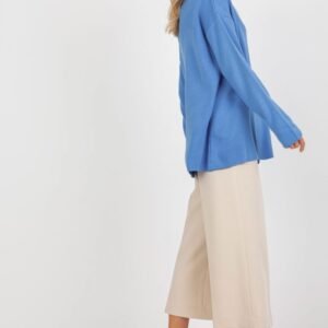 Sweter o luźnym kroju z długim rękawem oraz dekoltem w serek. Propozycja idealna na co dzień i nie tylko.