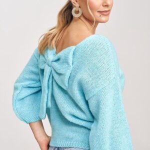 Sweter z rękawem o długości 3/4. Tył wycięty w kształcie litery V z ozdobną kokardą.
