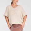 Sweter z rękawem o długości 3/4. Tył wycięty w kształcie litery V z ozdobną kokardą.