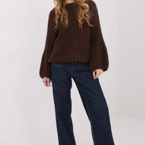 Damski sweter o casualowym charakterze, wykonany z materiału o grubym splocie, który doskonale sprawdzi się w chłodniejsze dni. Model idealny do noszenia na co dzień oraz do pracy, łączący wygodę z klasycznym stylem. Gładki wzór nadaje mu uniwersalnego wyglądu, a prążkowana struktura materiału podkreśla jego modny charakter. Sweter uszyty z wysokiej jakości mieszanki poliakrylu, poliamidu, wiskozy oraz wełny, zapewnia ciepło, miękkość i komfort noszenia. Standardowa długość, okrągły dekolt oraz brak zapięcia tworzą ponadczasowy fason. Długie, bufiaste rękawy dodają całości kobiecego uroku i oryginalności, czyniąc sweter stylowym elementem codziennych stylizacji.