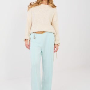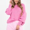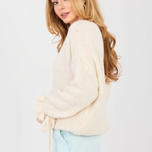 Damski sweter o casualowym charakterze, idealny do codziennych stylizacji oraz do pracy. Model o standardowej długości, wykonany z miękkiej i przyjemnej w dotyku mieszanki akrylu, poliamidu, wiskozy oraz wełny, która zapewnia komfort noszenia i ciepło. Gładki wzór nadaje swetrowi uniwersalnego wyglądu, dzięki czemu łatwo dopasować go do różnych elementów garderoby. Klasyczny, okrągły dekolt i długie rękawy podkreślają ponadczasowy fason. Ozdobne falbany z wiązaniem przy rękawach dodają całości kobiecego uroku i subtelnej oryginalności. Sweter nie posiada zapięcia, co zapewnia wygodę i swobodę noszenia.