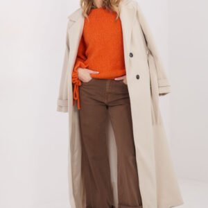Damski sweter o casualowym charakterze, idealny do codziennych stylizacji oraz do pracy. Model o standardowej długości, wykonany z miękkiej i przyjemnej w dotyku mieszanki akrylu, poliamidu, wiskozy oraz wełny, która zapewnia komfort noszenia i ciepło. Gładki wzór nadaje swetrowi uniwersalnego wyglądu, dzięki czemu łatwo dopasować go do różnych elementów garderoby. Klasyczny, okrągły dekolt i długie rękawy podkreślają ponadczasowy fason. Ozdobne falbany z wiązaniem przy rękawach dodają całości kobiecego uroku i subtelnej oryginalności. Sweter nie posiada zapięcia, co zapewnia wygodę i swobodę noszenia.