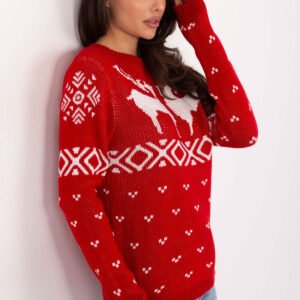 Damski sweter w stylu casual to urocza propozycja na codzienne, wizytowe okazje oraz imprezy w luźniejszym klimacie. Wykonany z miękkiego akrylu, zapewnia komfort noszenia i przyjemne ciepło. Model o standardowej długości z długim rękawem i okrągłym dekoltem jest wygodny i łatwy w stylizacji. Nadruk w serduszka oraz renifery nadaje swetrowi świątecznego, radosnego charakteru, idealnego na sezonowe spotkania i casualowe wyjścia. Sweter nie posiada zapięcia, co ułatwia szybkie zakładanie i tworzenie warstwowych stylizacji. Stylowy, wygodny i pełen uroku doskonały na świąteczne i codzienne okazje.
