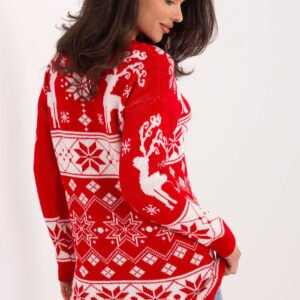 Stylowy, długi sweter damski wykonany z miękkiego, przyjemnego w dotyku akrylu to doskonała propozycja na sezon zimowy. Dominujący świąteczny nadruk nadaje mu niepowtarzalnego uroku, dzięki czemu świetnie sprawdzi się zarówno podczas rodzinnych spotkań, jak i casualowych wyjść ze znajomymi. Model o długim kroju i z długim rękawem zapewnia komfort oraz ciepło w chłodniejsze dni. Okrągły dekolt podkreśla klasyczny charakter swetra, a brak zapięcia sprawia, że jest wygodny i łatwy do noszenia. To idealny wybór dla kobiet, które cenią sobie styl, wygodę i odrobinę świątecznego klimatu w swojej garderobie.