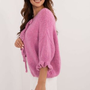 Damski sweter casual, idealny na codzienne okazje. Wyróżnia się gładkim wzorem, co nadaje mu minimalistycznego, uniwersalnego charakteru. Wykonany z miękkiego akrylu, zapewnia wygodę i komfort noszenia na co dzień. Sweter ma standardową długość oraz rękawy o długości 3/4, które dodają lekkości i casualowego stylu. Zamiast tradycyjnych guzików, sweter posiada wiązanie na trzy troczki, co dodaje mu oryginalności i modnego wyglądu. Idealny wybór do codziennych, swobodnych stylizacji.