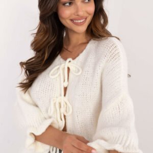 Damski sweter casual, idealny na codzienne okazje. Wyróżnia się gładkim wzorem, co nadaje mu minimalistycznego, uniwersalnego charakteru. Wykonany z miękkiego akrylu, zapewnia wygodę i komfort noszenia na co dzień. Sweter ma standardową długość oraz rękawy o długości 3/4, które dodają lekkości i casualowego stylu. Zamiast tradycyjnych guzików, sweter posiada wiązanie na trzy troczki, co dodaje mu oryginalności i modnego wyglądu. Idealny wybór do codziennych, swobodnych stylizacji.