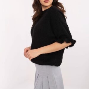 Stylowy damski sweter o casualowym charakterze to doskonały wybór na co dzień i do pracy. Wykonany z miękkiej mieszanki akrylu, wełny, poliamidu i wiskozy, zapewnia ciepło i komfort noszenia. Posiada klasyczną, standardową długość oraz elegancki okrągły dekolt, który subtelnie podkreśla szyję. Rękawy o długości 3/4 zdobią delikatne falbanki, dodające całości kobiecego uroku. Gładka faktura materiału sprawia, że sweter jest uniwersalny i łatwy do stylizacji, idealny zarówno do eleganckich spodni, jak i codziennych jeansów.